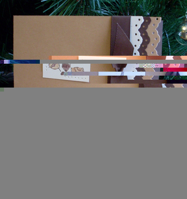 This first card is a 5 1/2″ square card of Creamy Caramel, I’ve used the eyelet border punch on the front edge and on a strip of Very Vanilla and Chocolate Chip, another strip of Chocolate Chip is stuck to the inside so you can just see it through the eyelet holes. I’ve used the wide Chocolate Chip ribbon to decorate and then stamped the image in Chocolate Chip and used the blender pens to make some lovely Chocolate flowers. A little paper piercing to finish.